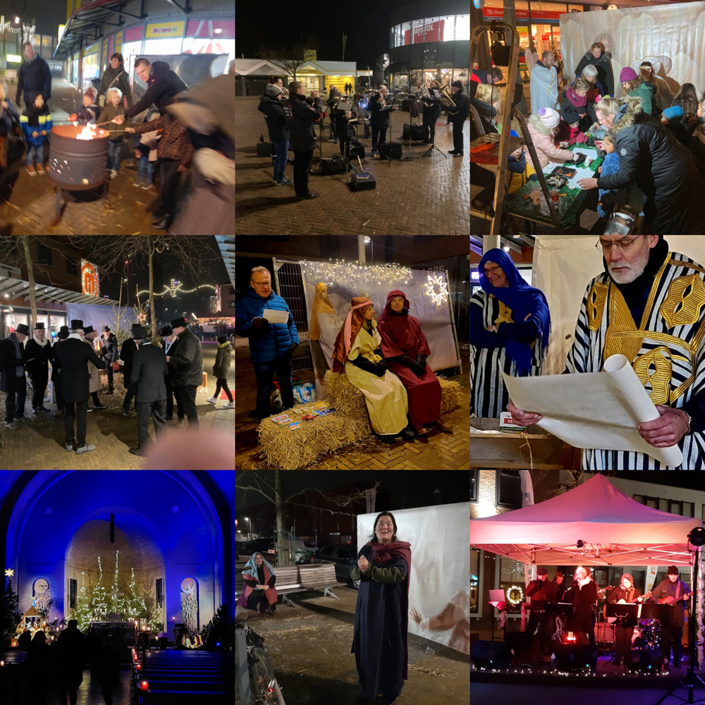 We stonden ook op de Kerstmarkt met geschilderde doeken van Kerstverhalen van Jessy Ronner, - met vrijwilligers die de verhalen uitbeeldden -, koren, zangers èn een samenzang om 16:00 uur met bekende Kerstliederen. Bovendien was er een speurtocht georganiseerd. De prijswinnaars waren: